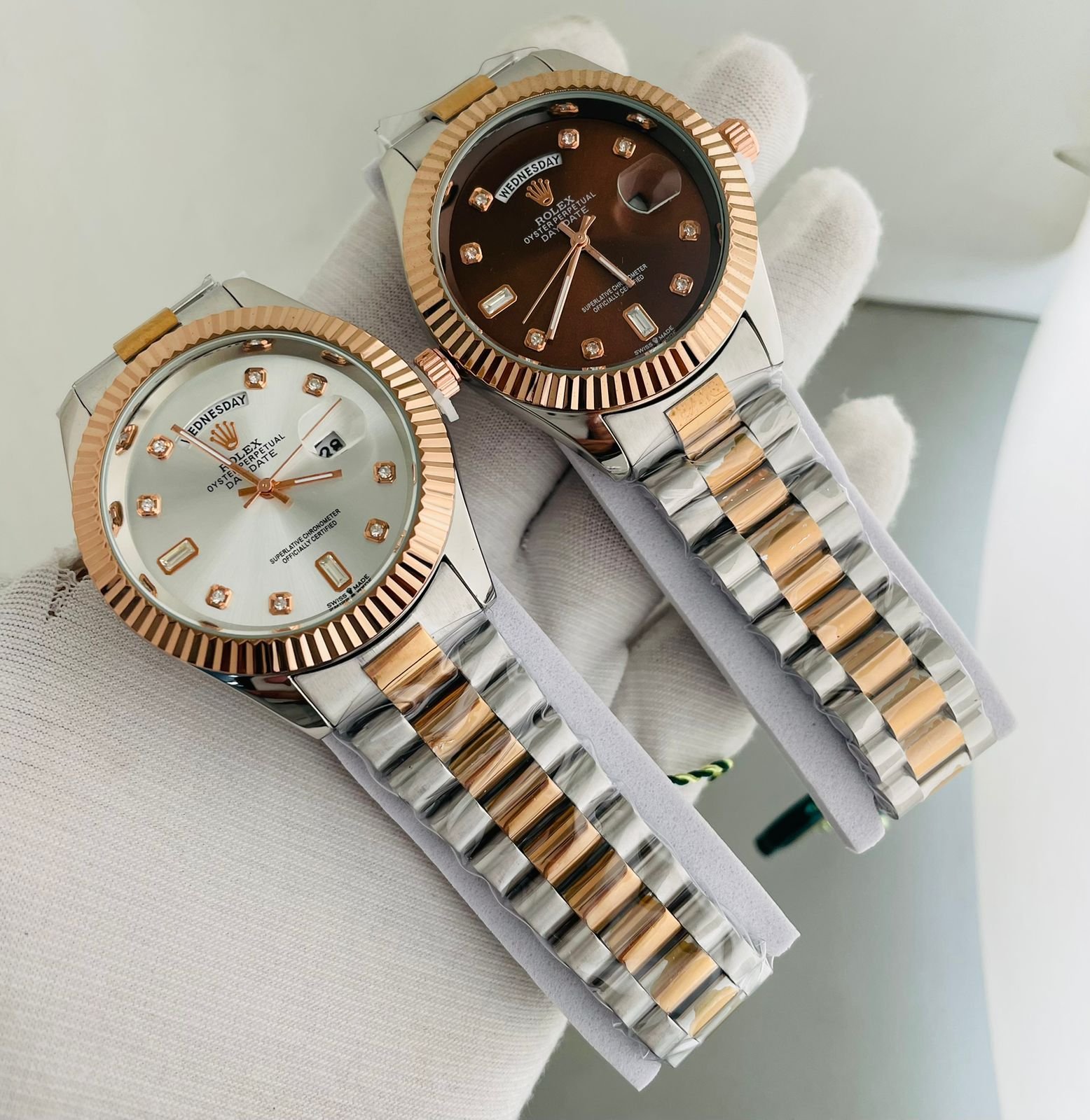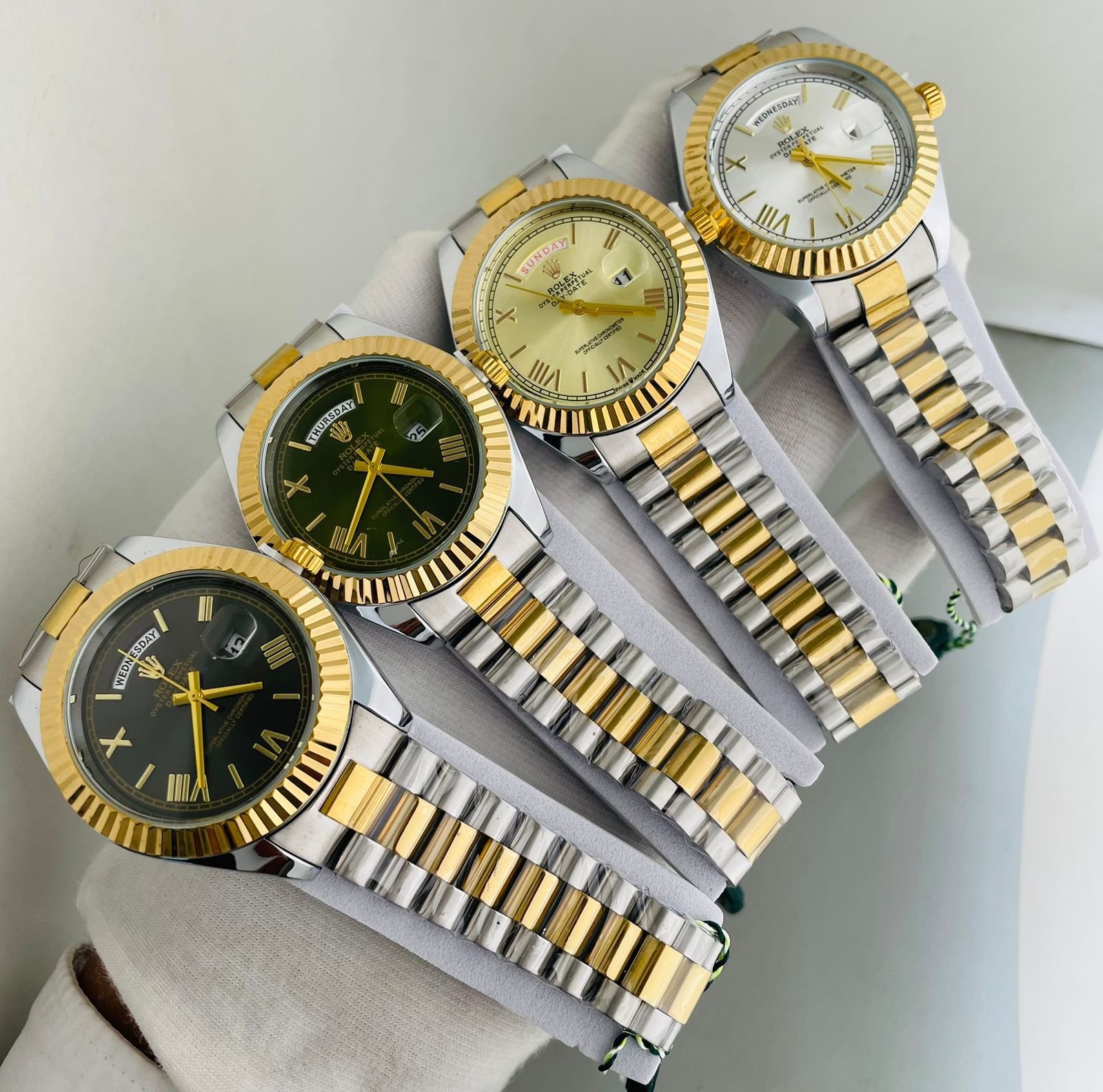 The Rolex M39 Two-Tone President Mens Watch is crafted for a premium royal look with a gold-silver stainless steel bracelet and Roman dial. The Day & Date display adds practicality while the presidential design gives a bold, luxurious presence. Perfect for weddings, parties, office, and daily wear.