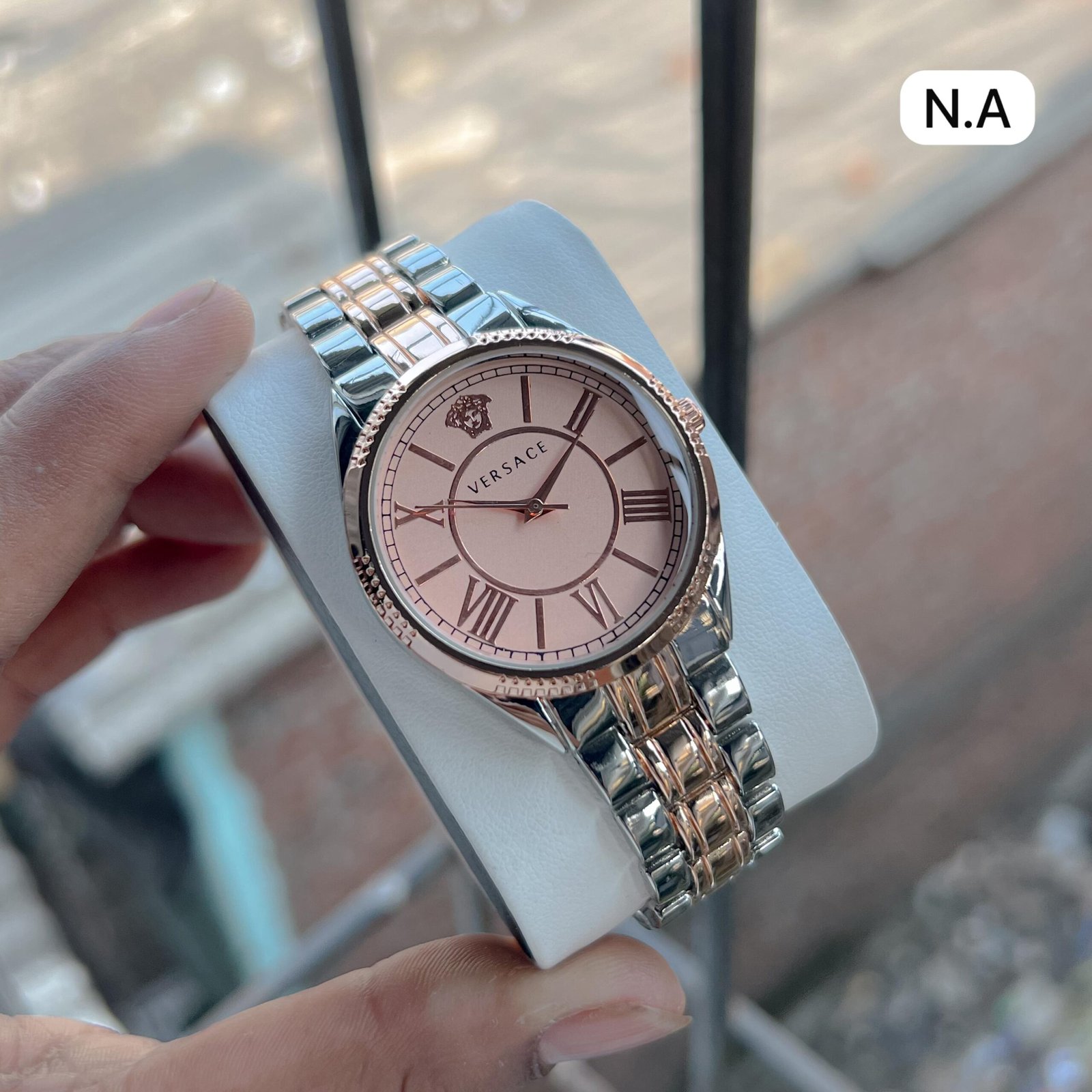 The Versace Two-Tone Roman Luxury Edition brings premium royal styling with a matte blue dial, rose-gold Roman index and a silver–rose two-tone bracelet. A perfect blend of luxury and high-class elegance for men.
