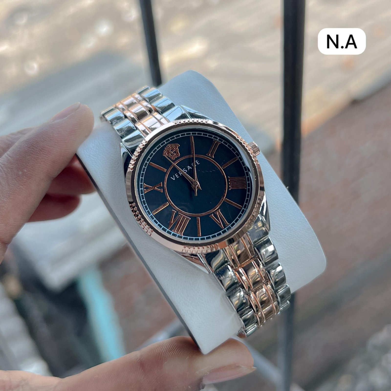 The Versace Two-Tone Roman Luxury Edition is crafted for men who prefer a bold yet royal personality look. The stunning navy-blue dial paired with striking rose-gold Roman markers gives the watch a timeless luxury appearance. The iconic lion crest at the 12-o’clock position enhances the premium identity of the design.
